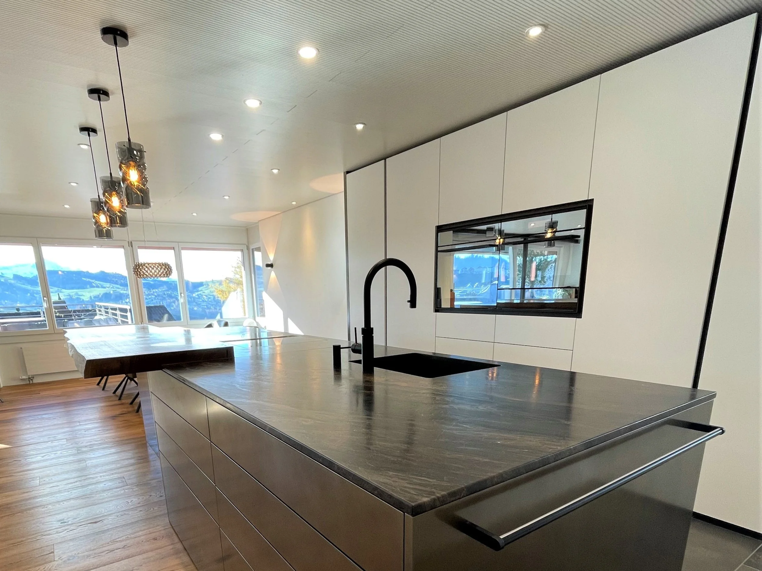 «Unsere wunderschöne Küche wurde vom hp. müller Team realisiert und umgesetzt. Von der Beratung bis zur Montage sind wir sehr zufrieden. Dank der gut geplanten Bauführung der Firma hp. müller wurde die Küche schön nach Terminplan ausgeführt.»